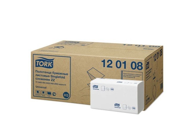 Купить 120108 Tork листовые полотенца Singlefold сложения ZZ, категория Universal, 1-сл.